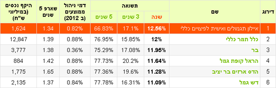 קרנות ההשתלמות המובילות באפיק כללי בשנת 2013: